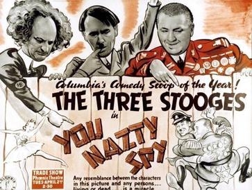 The Three Stooges’ 44th short film was probably the trio’s most controversial. Starring Moe Howard, Larry Fine and Curly Howard, You Natzy Spy! was the first Hollywood film to spoof Hitler and satirize the Nazis and the Third Reich.