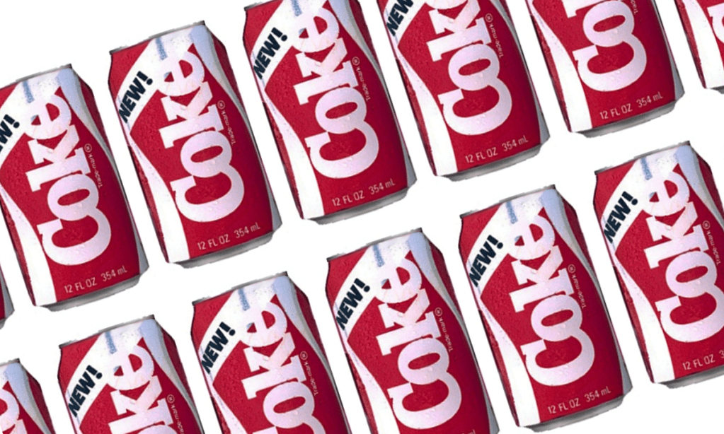 Those old enough to remember, know that the marketing for the new product was a complete failure. Three months later, the red cans came back on the shelves re-branded as “Coca Cola Classic.”
