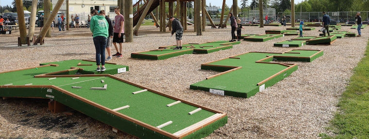 While this course features a lot less bells and whistles that you can find at other courses, it is still fun, makes a great alternative for young ones who decide that they are too scared to do the ropes course and a great add-on activity once everyone is done on the ropes course. In fact, the cost for 18 holes is just $5 per person if you already doing the ropes course.