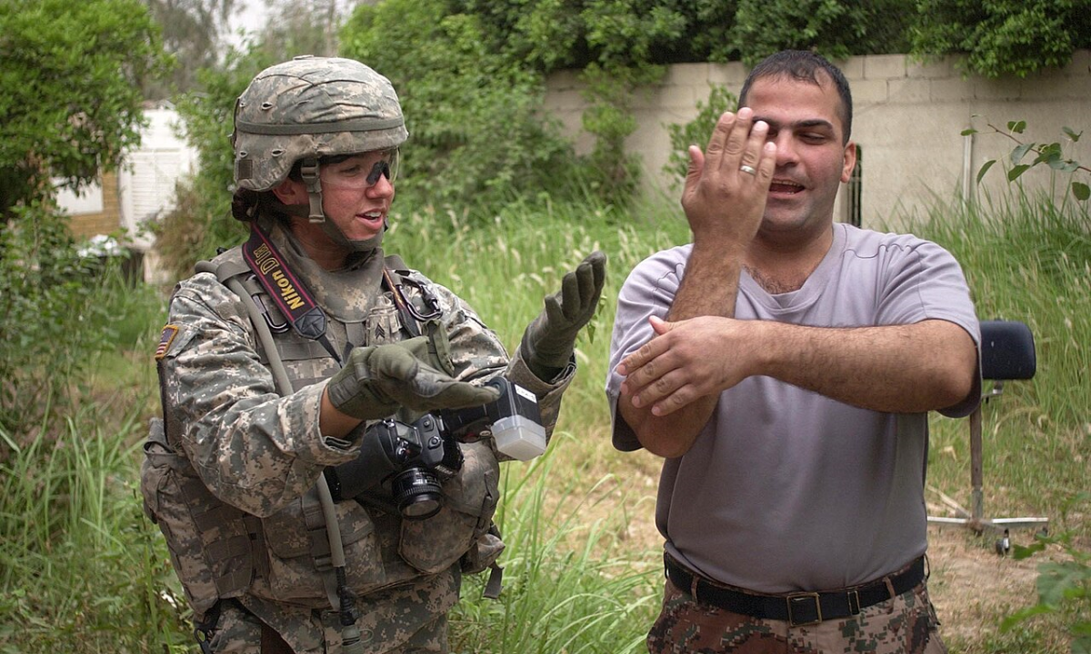 The Macarena dance was crazy popular. The above photo is of a U.S. Army sergeant who is seen teaching the Macarena to an Iraqi army soldier during a break from a cordon and search mission in Ameriyah, Iraq in 2007. (Image: U.S. Army photo by Spc. Elisha Dawkins)