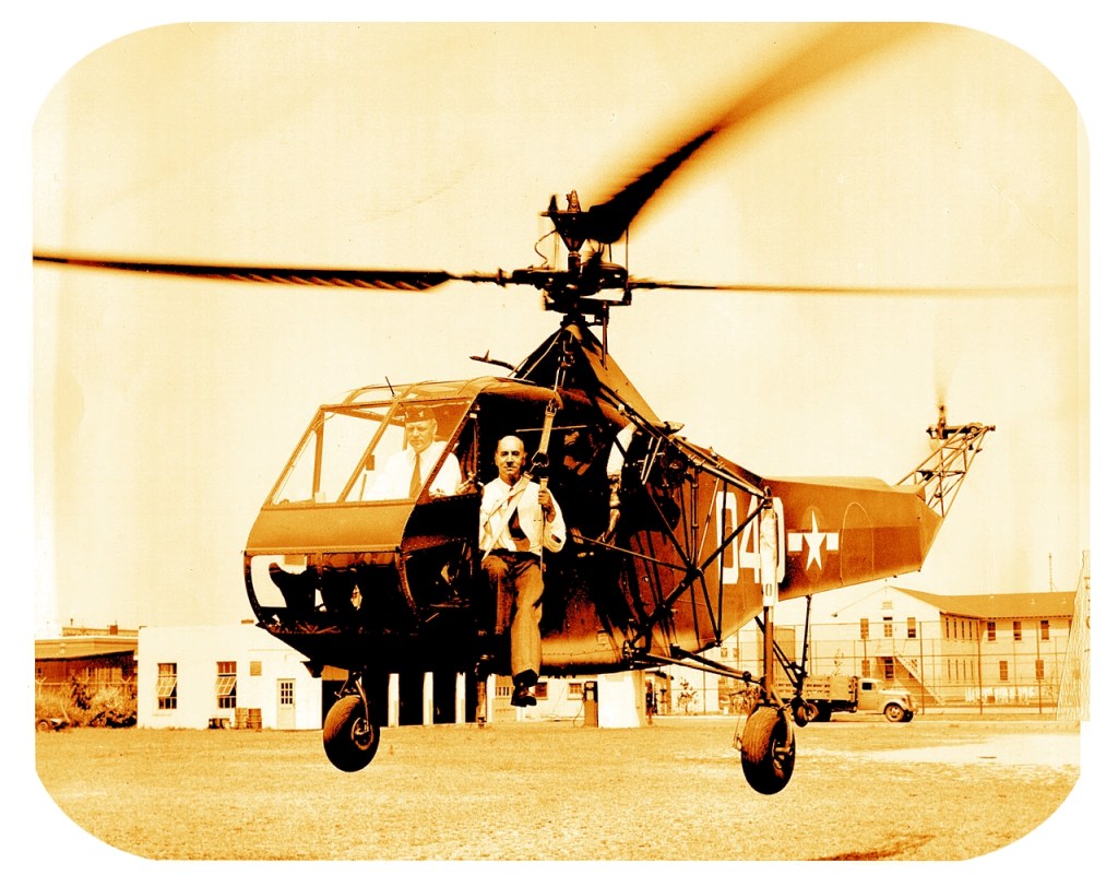 It was on this day in 1939 that the VS-300, the world’s first helicopter took to the skies in Stratford, Connecticut. It was designed and piloted by Igor Sikorsky. The first flight lasted just a few seconds, but it was a start. The first free flight took place half a year later. With little more than just an outline of a flying machine and three-blade rotor with a length of 28 feet, it was a sight to see. (Image: Wikimedia)