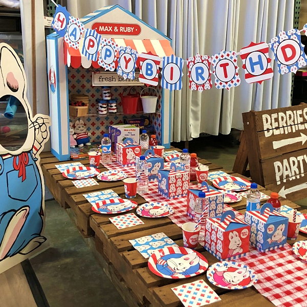 The kids will love sitting around the dining room table that has been transformed into Llama Llama’s patchwork quilted bed or create the ultimate “kids’ table” with a couple of wooden pallets and turn the living room into a picnic place with the Max and Ruby rabbits.