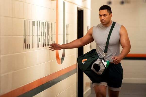 Then in 1990, college student Rock (Uli Latukefu) is a freshman at the University of Miami trying out for the football team and it turns out this dad has told a few stories to make his son look good which in turn, makes his feel bad.