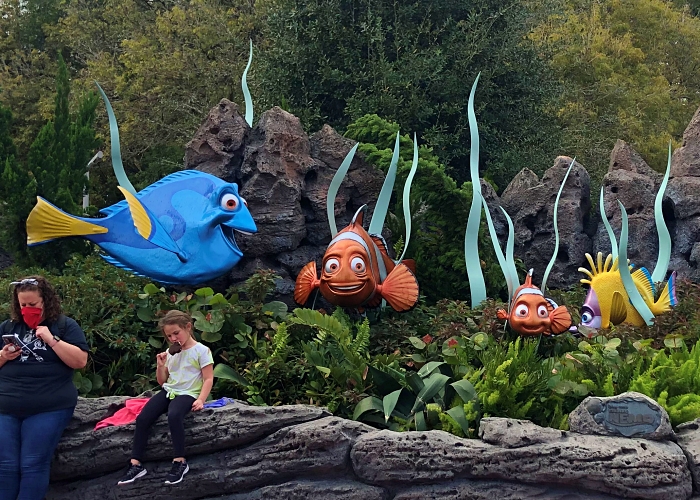 Since we entered the park at World Showcase (instead of Future World which was the only entrance for many years) we started our journey there. As always, it looked great. The only thing missing were the live music performances. There are a couple, but most of the others are not operating right now. That takes a little of the fun away, but not much. However, I did hear two guests complain that they thought that the area was just a bunch of shops and restaurants to spend money. And they’re right to an extent. There is a lot to explore at Epcot, but they are little things as opposed to big attractions and many people just walk right past them.