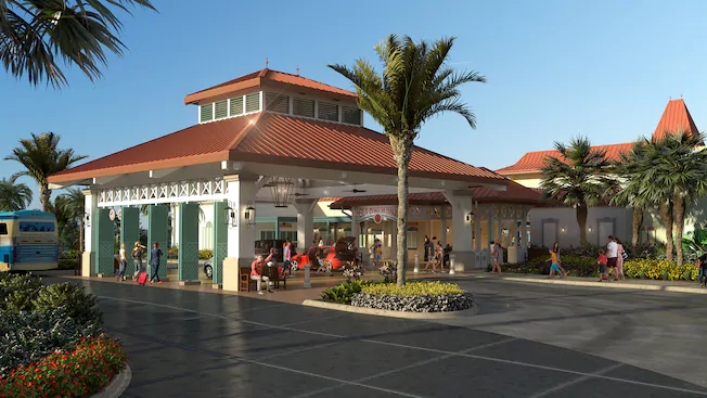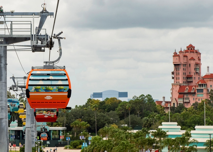 The pluses of staying at the Caribbean Resort (and especially in the Aruba village) included the transportation options to the theme parks. Our room was only a short walk away from both the bus service and the Skyliner gondola service. We loved the Skyliner as it takes you right from the Caribbean Resort to both Epcot and Disney Hollywood Studios. Once you disembark, you can walk right into the parks! (Well, of course after getting your temperature checked.) One thing to note though, the boarding lines do get longer during other times of the year.