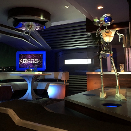 Galaxy’s Edge only features two attractions – Rise of the Resistance and Millennium Falcon: Smugglers Run. The latter allows you to “fly” the Millennium Falcon. While watching the screens in front of you, you are also responsible to hitting buttons that light up in front of you. I doubt that they actually do anything with the ride, but it is fun to pretend that they do. It’s similar to Star Tours but different enough to be enjoyable. (By the way, Star Tours: The Adventure Continues is the update of the classic ride that was done a number of years ago but is so much better than the original which features a mix of different ride films for a different experience each time you board. Ironically, it is located in the Echo Lake area, not Galaxy’s Edge.