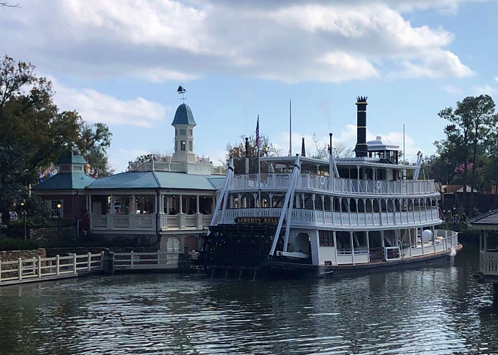 Currently, The Hall of Presidents is closed for refurbishment, which happens right after a new president takes office in Washington D.C. (It will reopen later this year with a new President Biden making a brief speech.), but the Liberty Belle Riverboat was in operation and so was the Haunted Mansion. We noticed a huge change with the latter attraction. Instead of being ushered into the “stretching room” and greeted by the “ghost host,” we were escorted right through the room and onto our “doom buggy.” We also felt that the inside of the mansion seemed darker than usual making it hard to see some of the spooky creatures. This certainly took some of the fun out of the experience. However, we enjoyed the newer special effects regarding the “hitchhiking ghosts” at the end of the ride.