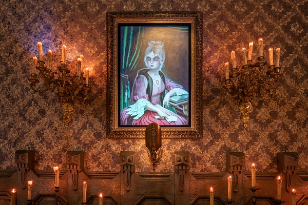 One of the original portraits known as “April to December” used to grace this space as the image used to age before one’s eyes but it is suspected that the effect no longer worked with the flashing of the lightning and was removed. The Marc Davis piece is back and sits near the Doom Buggy loading area.