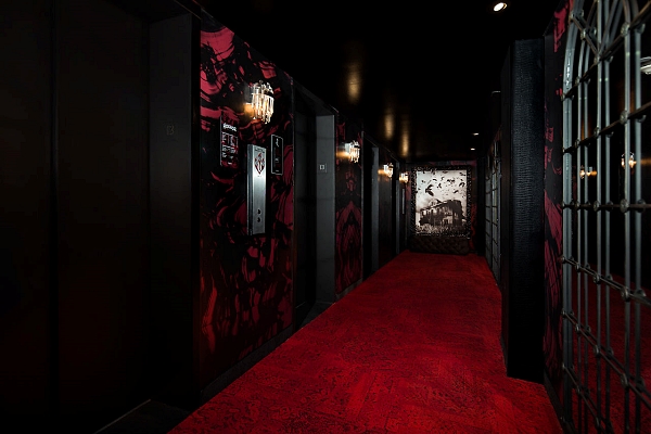 Found on the hotel’s 13th “scary movie floor,” the Ghostbusters Suite features an over-the-top experience. The crisp, white walls contrast against the “Slimer Green” flooring (which moves under one’s feet), the drapes are printed with repeating Ghostbusters symbols and the Ecto-1 car is featured above the bed. Snacks available include an “ectoplasm” drink and sticky, Slimer green popcorn. In addition, some of the hotel staff have been known to dress up in the iconic jumpsuits from the movies and Vigo the Carpathian (from the second movie) might show up in the bathroom.