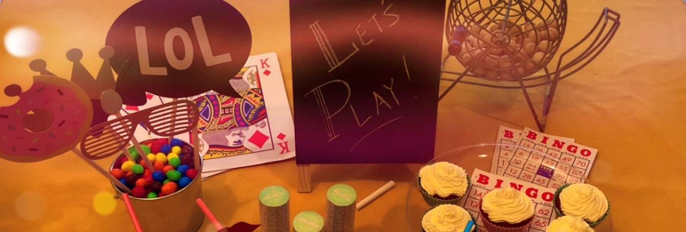 Make it casual affair. Put on some playful music. No need for crazy decorations unless you want to. Set up a “photo booth” with props just for fun. You can find cheap sets of props at dollar stores or craft stores. You can even create your own with things around the house using old hats, scarves, sunglasses, etc. Sure, the first photo might be awkward, but once someone poses for one, others will be sure to follow. Fill a few small metal buckets with M&M’s or Skittles and put them in strategic places your living room for easy access and let the games begin.