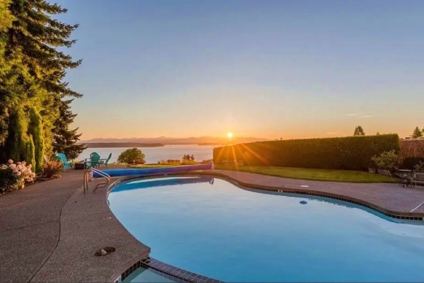 Many of those who live here, are unaware of this amazing pool location overlooking the Puget Sound, evening sunsets, and snowcapped Olympic Mountains. Set in a quiet backyard oasis, this pool offers a private outdoor restroom and shower, fire pit and WiFi. use of the barbecue grill and hot tub is an extra fee. Can accommodate up to 15 guest.