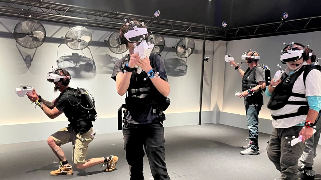 On our way back to our VR room where we would soon be doing battle, we could hear the screams of delight from other teams engrossed in their own adventures. Peeking in, you can see that each room is almost completely empty with stark white walls and a few fans for air circulation.