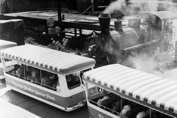 This time around, guests were paraded inside “Glamor Trams” with red and white awnings. The two-hour long tours (which is about twice as long as today’s tours) would drive by numerous real sets and sound stages used to make movies and TV shows. The house from Psycho was one of the first film sets accessible for visitors to see. No other movie studio was offering such a thing. The trams were loaded up five times a day Mondays through Fridays.