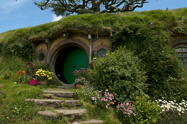 Both the Lord of the Rings and The Hobbit movie franchises from the 1990’s was filmed at Hobbiton, a family-run farm serving as a Tolkien tourism destination with guided tours. There are 44 hobbit holes to see, but only a few can be entered.