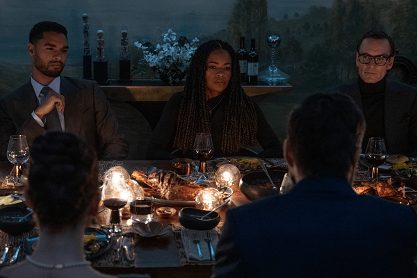(L-R) Colonel James Stokes (Regé-Jean Page), Zoe Vaughan (Naomie Harris) and George (Michael Fassbender) Zoe Vaughan (Focus Features)