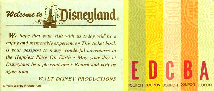 Attraction tickets at Disneyland varied in price in 1955 with an A-C rating system. “A” rides were the simplest and least popular while the “C” tickets were the most popular. After three months of operation, the park began to offer “value books” which contained several tickets of each letter. The next year, Disney upgraded some “C” rides to the newly designated “D” category. Then in 1959, after an extensive remodel, “E” tickets were included in the book and were considered the best of the best. An “A” ticket’s price would be just 10 cents while the “E” ticket would be 85 cents. By 1982, the ticket system was eliminated.