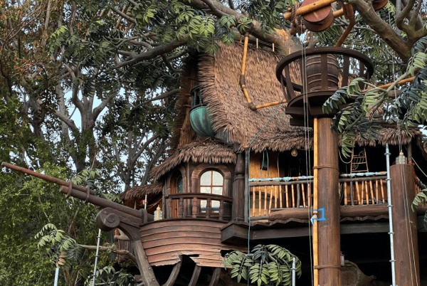 In 1962, Adventureland added a giant treehouse based on the one featured in the movie, Swiss Family Robinson. In 1999, it was transformed into Tarzan’s Treehouse based on the animated movie. In 2021, the treehouse was closed once and reopened in 2023 as the Adventureland Treehouse. While it’s not the same, it is a reimaging of the Swiss Family Robinson Treehouse. The mother of this story has a music den, father has an art studio, the son has a nature room and is sister has a room dedicated to astronomy. Adjacent to the stairway is the home’s iconic waterwheel, which generates the energy needed to power the family’s gadgets and inventions. You’ll find the kitchen, dining room and pet ostrich on the bottom floor.