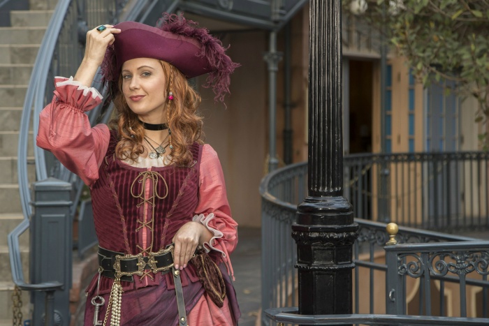 It is estimated that guests have ridden the Pirates of the Caribbean ride more than any other attraction in the park. Despite its popularity, it has been one of the most controversial rides. For one thing, the theme song features antics of the pirates including plundering, pillaging, rifling, looting, kidnapping, ravaging, extorting, embezzling, hijacking, kindling, charring, inflaming, igniting, burning up the city, begging and drinking. Not exactly family friendly. But the park has also been criticized for making changes to the ride as well. In the late 1990s, the scene where the pirates were chasing women was changed to feature pirates chasing food carried by the women! A more recent alteration comes from the auctioneer’s scene where “wenches” were being auctioned off. A beautiful redhead would be used to entice the pirates but then would actually sell them homely women. The new scene involves pirates auctioning off the villagers’ possessions instead and this time, the auctioneer is the redhead. She’s the only female pirate featured on the ride and is also a walk-around character.