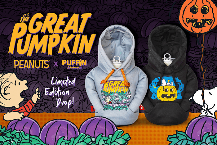 In celebration of Peanuts’ 75th anniversary, Puffin has come up with two designs which pay homage to the iconic Halloween holiday special. The grey Puffin hoodie features orange drawstrings and images of Linus and Snoopy in the pumpkin patch. The black hoodie has black drawstrings and a picture of Woodstock and Snoopy napping on top of a Jack-o-lantern.