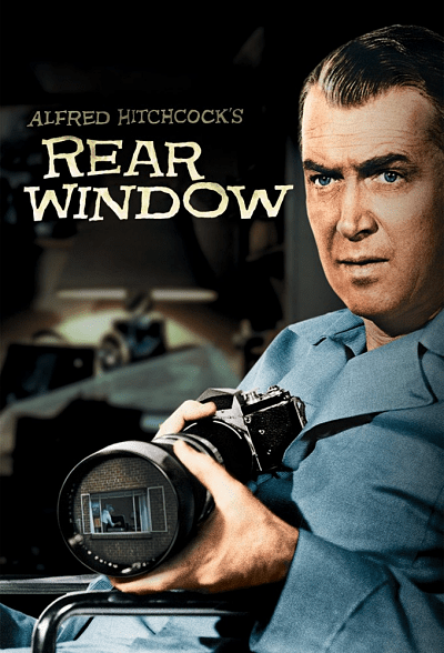 Another similarity of these two films is that the audience has the same point of view as the heroes. Jeffries watches the happening of his neighborhood from his apartment’s rear window. He gets closeups by looking through his camera’s viewfinder. Raven faces a screen of a larger-than-life A.I. Judge Maddox (Rebecca Ferguson) who provides him footage from cameras used on doorbells, police uniforms, social media, public surveillance cameras and more. Image: Jimmy Stewart in Rear Window (TVDB)
