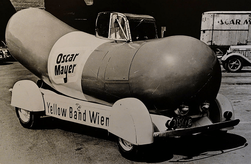 The Wienermobile has been a part of Oscar Meyer’s history since 1936 and was created by Carl G. Mayer, Oscar’s nephew. The initial vehicle made its debut appearance in Janesville, Wisconsin on October 16, 1936. To add to the spectacle, the hot dog car had a traveling companion: “Little Oscar”. The “World’s Smallest Chef” who stood tall at just 42 inches.